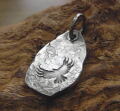 ザ・ビンゴブラザーズ ペンダントヘッド ハンマーで叩き潰して成型した 荒々しく力強くナチュラルな仕上がり 丸カン部も合わせた雰囲気に仕上げています。 オリジナルで作られたタガネによる イーグルスタンプを打刻した1点ものの逸品 ハンドメイドならではの魅力溢れる仕上がり 当店にて革紐がおまけで付属します。 1点付けはもちろんの事 他のフェザーやイーグルと組み合わせ ホワイトハーツやシルバーチェーン・革ひも お好みに合わせた様々なバリエーションで 首・胸元を飾ります。 同じ物が一つとないハンドメイドならではの 一期一会な出会いを楽しみ お気に入りのを選んで頂ければと思います。 |